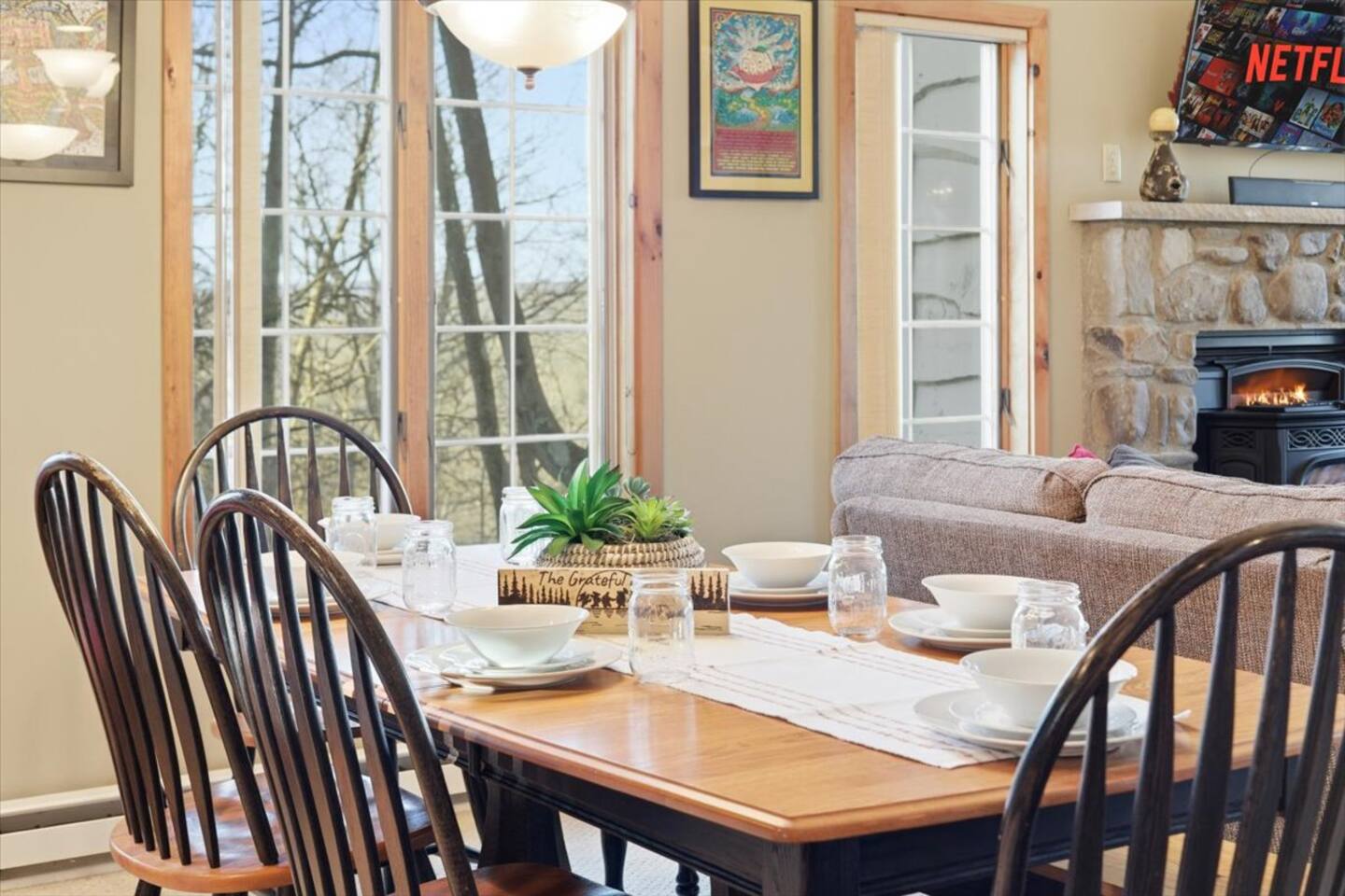 Please note: Jack Frost/Big Boulder closes for the season on March 23 KEY FEATURES: ☀ Sleeps 6; 3 bedrooms each with a Queen bed ☀ 3 Full Bathrooms ☀ Well-equipped kitchen with large dining table ☀ Smart TVs throughout ☀ Pellet Stove ☀ Board games and puzzles ☀ Back deck with gorgeous mountain views ☀ Walk right on to the Jack Frost/Big Boulder ski hills! ☆☆ BEDROOMS ☆☆ This extremely spacious getaway accommodates 6 guests in 3 bedrooms The primary bedroom is on the first floor of the home and is fitted with a Queen-size bed. There is a second bedroom with a Queen bed and full bathroom on the first floor as well. The second floor has 1 bedroom with a queen-sized bed and another full bathroom. There are linens, extra blankets, and extra pillows so you don’t have to bring a thing with you to have a super comfortable night’s sleep! ☆☆ BATHROOMS ☆☆ There are three full bathrooms, each of them stocked with the essentials you need for the duration of your stay. The primary bathroom is an en-suite with a stall shower. The other first floor bathroom is a shower as well. The second floor bathroom has a tub/shower combo and is an en-suite for that bathroom. We provide a hair dryer, shampoo, conditioner, & body wash in each bathroom. There are also plenty of towels so you don't have to pack any! ☆☆ KITCHEN ☆☆ The kitchen is fully equipped with all the appliances, utensils and cookware you need to feel at home. The dining area seats 6 guests at the formal dining table and there is additional seating available at the kitchen breakfast bar for 4 more. Enjoy your morning coffee or tea with our fully-stocked coffee bar. ☆☆ OUTSIDE SPACE ☆☆ The deck out front is a perfect space to sit, relax, and enjoy the views! A very short walk will take to you to a path leading right to the bunny hill on Jack Frost! With natural snow, you can ski in and ski out right to the front door! This house, while in a great place to vacation, is also home to some full-time residents. We strive to be the best possible neighbors and ask that you please be respectful. Quiet hours will be strictly observed and enforced.