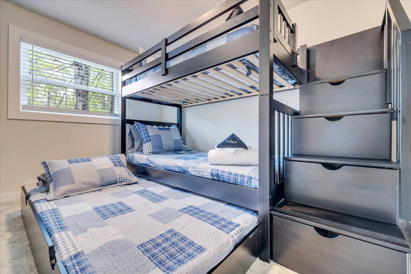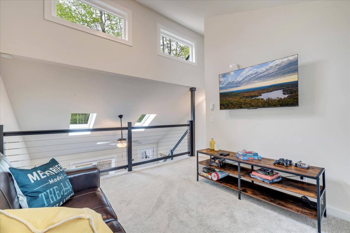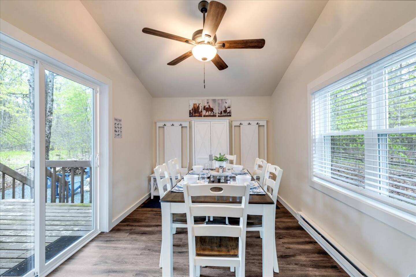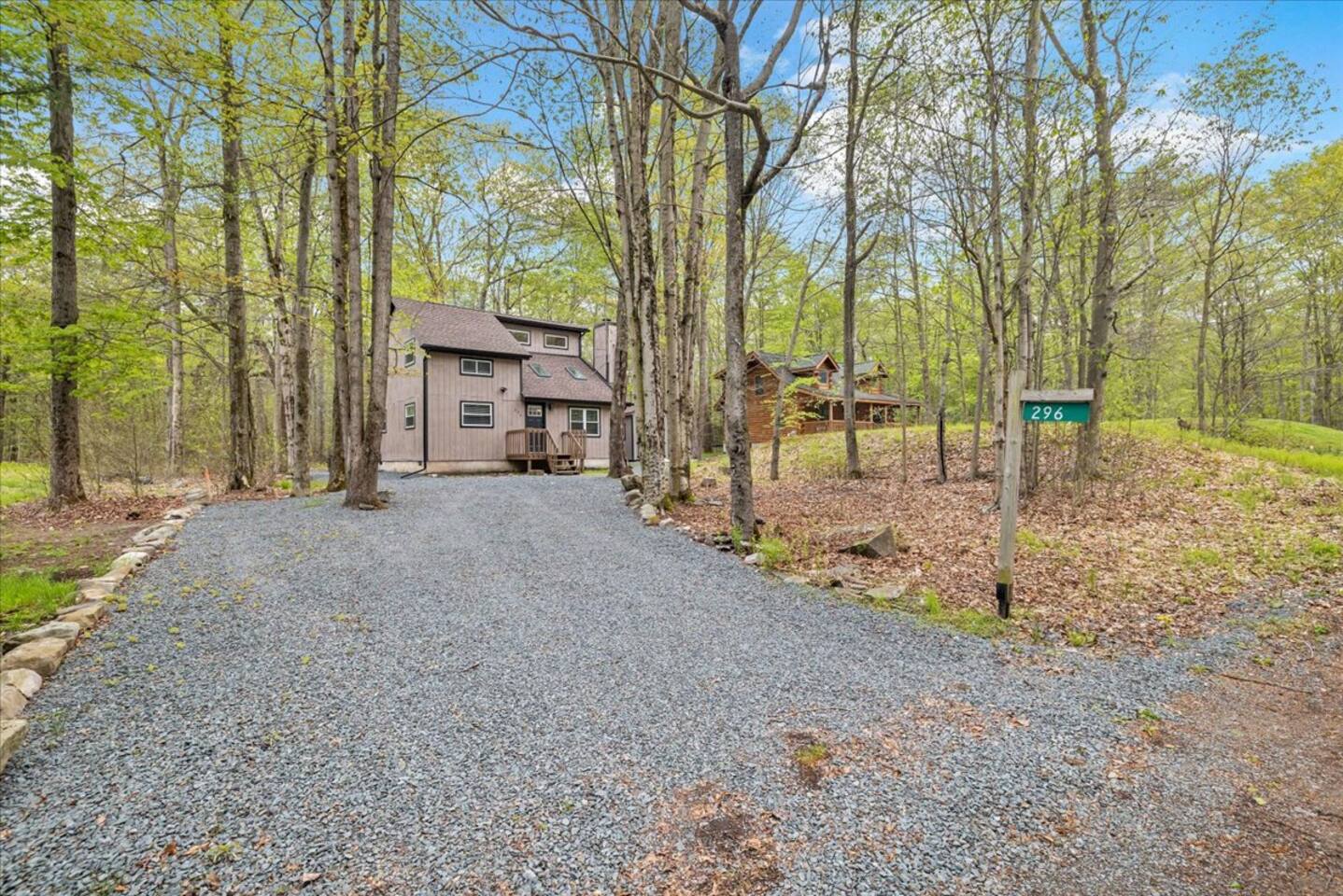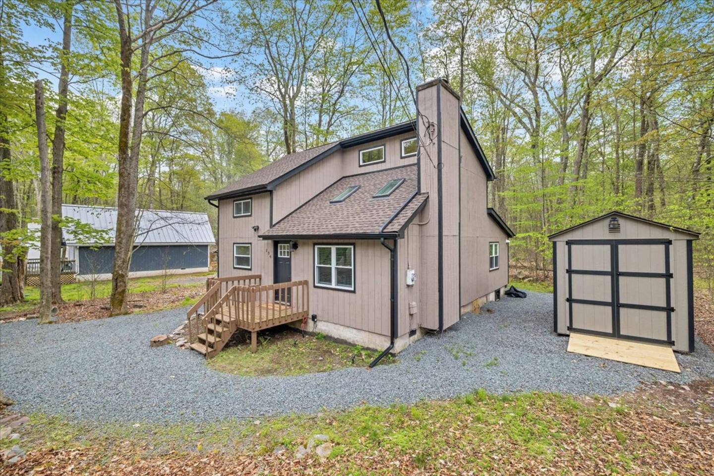 **Please note: Any last-minute bookings (less than 3 days before stay) will be charged an additional $100 for expedited community registration after booking. Failure to provide necessary registration information will result in your booking being cancelled without refund** The space KEY FEATURES: ☀ Sleeps 6; 3 bedrooms, 1 king, 1 queen, 2 twin bunks, 1 twin size trundle ☀ 2 Bathrooms; 1 full with combo shower/tub, 1 with shower only ☀ Modern and well-equipped kitchen with seating for 6 guests ☀ Loft for additional space ☀ Roku entertainment systems throughout the home ☀ Board games and puzzles ☀ Dog-friendly ☀ Gorgeous forest views ☀ Back deck with grill ☀ Fire pit and outdoor games ☀ Short distance to Pocono Mt. attractions ☀ BRAND NEW 6 PERSON HOT TUB ☀12 miles from Jack Frost, Big Boulder Ski ☀13 miles from Kalahari ☀11 miles from Pocono Raceway **Please be sure to book with the correct number of guests in your party. You will be registered with the community and they need exact guest counts. A change in guest count will result in additional fees after booking. Bookings made less than 3 days before stay will be charged a $100 expedited registration fee after booking** ☆☆ BEDROOMS ☆☆ This gorgeous forest hideaway accommodates 6 guests in 3 bedrooms The master bedroom is on the main level of the home and is fitted with a king-size bed. The secondary bedroom features a queen-size bed. The third bedroom has a set of twin-sized bunk beds. An additional twin-size trundle bed is located beneath the bunks. TVs in all three rooms. ☆☆ BATHROOMS ☆☆ There are two full bathrooms, each of them stocked with the essentials you need for the duration of your stay. The first floor bathroom has a bath/shower combo as well as a washer and dryer for your use. The second bathroom has a shower only. We provide shampoo, conditioner, & body wash in each bathroom. ☆☆ KITCHEN ☆☆ The bright and airy kitchen is fully equipped with all the appliances, utensils and cookware you need to feel at home. The dining area seats 6 guests at the gorgeous wooden table. We even have a high chair for our smallest guests to use! Enjoy your morning coffee or tea with our fully-stocked coffee bar. There's even an air fryer so you can make your favorite meals! ☆☆ OUTSIDE SPACE ☆☆ The exterior area of this home boasts a cozy fire pit with plenty of space for you to relax around. There is a table on the back deck for your enjoyment as well as a bbq grill. We have provided some outdoor games to help make your stay fun! Guests also have access to the amenities and activities that the Arrowhead Lake gated community has to offer, such as beaches, pools, and a community center with pool tables and a fitness center. The brand new, 6-person hot tub is right off the back deck making it easy to go out and enjoy a relaxing soak! Other things to note: By booking, you accept responsibility for any damage/extra cleaning your dog causes during the stay. No dogs left home alone unless crated. Please clean up after your pet. $100 per pet fee Use of community amenities is not guaranteed. Amenity availability is determined solely by the community/HOA and may change without notice. No refunds or discounts will be provided if amenities are unavailable during your stay. This home is located in a community with full-time residents. We aim to be respectful neighbors and kindly ask that you do the same. Quiet hours will be strictly observed and enforced.
