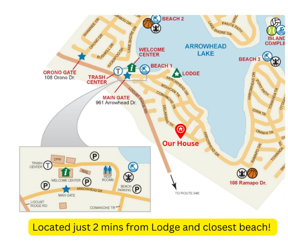 Be sure to book with the correct number of guests. Adding additional guests after booking will result in additional charges from the Arrowhead Lake Community. When booking, please have the following information: -make/ model/ year of the vehicle(s) you're bringing -license plate number(s)/state for vehicle(s) -Name of driver(s) This information is needed to register your party with the community. You will not be able to access the community without being registered. Reservations that are not registered with the community will be cancelled without refund. Minimum age to rent is 25. Township Registration Number: 020538
