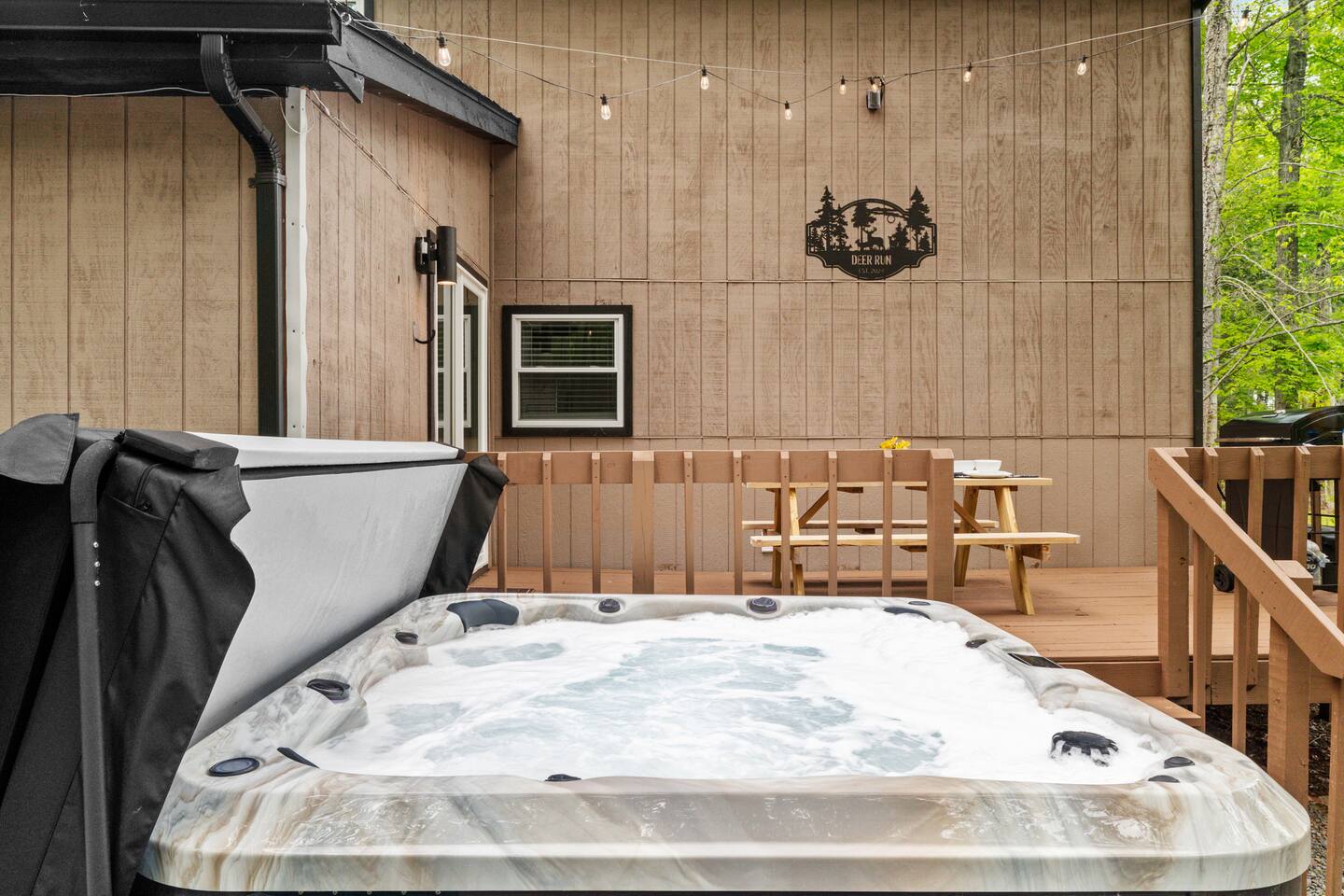 Welcome to Deer Run! This cozy retreat is perfect for the whole family including your dog! With a wooded back yard and brand new hot tub, the tranquil setting is perfect to enjoy Pocono Mountain nature. Four beaches and three pools are available in the community to enjoy during your stay! We have everything you need from board games to puzzles, hot tub, and cozy fire pit so you can relax and unwind! Come have 's'more' fun with us this summer in the Pocono Mountains!