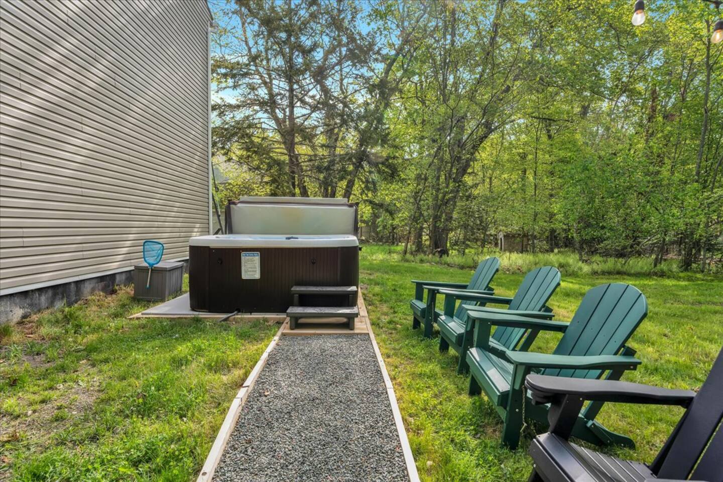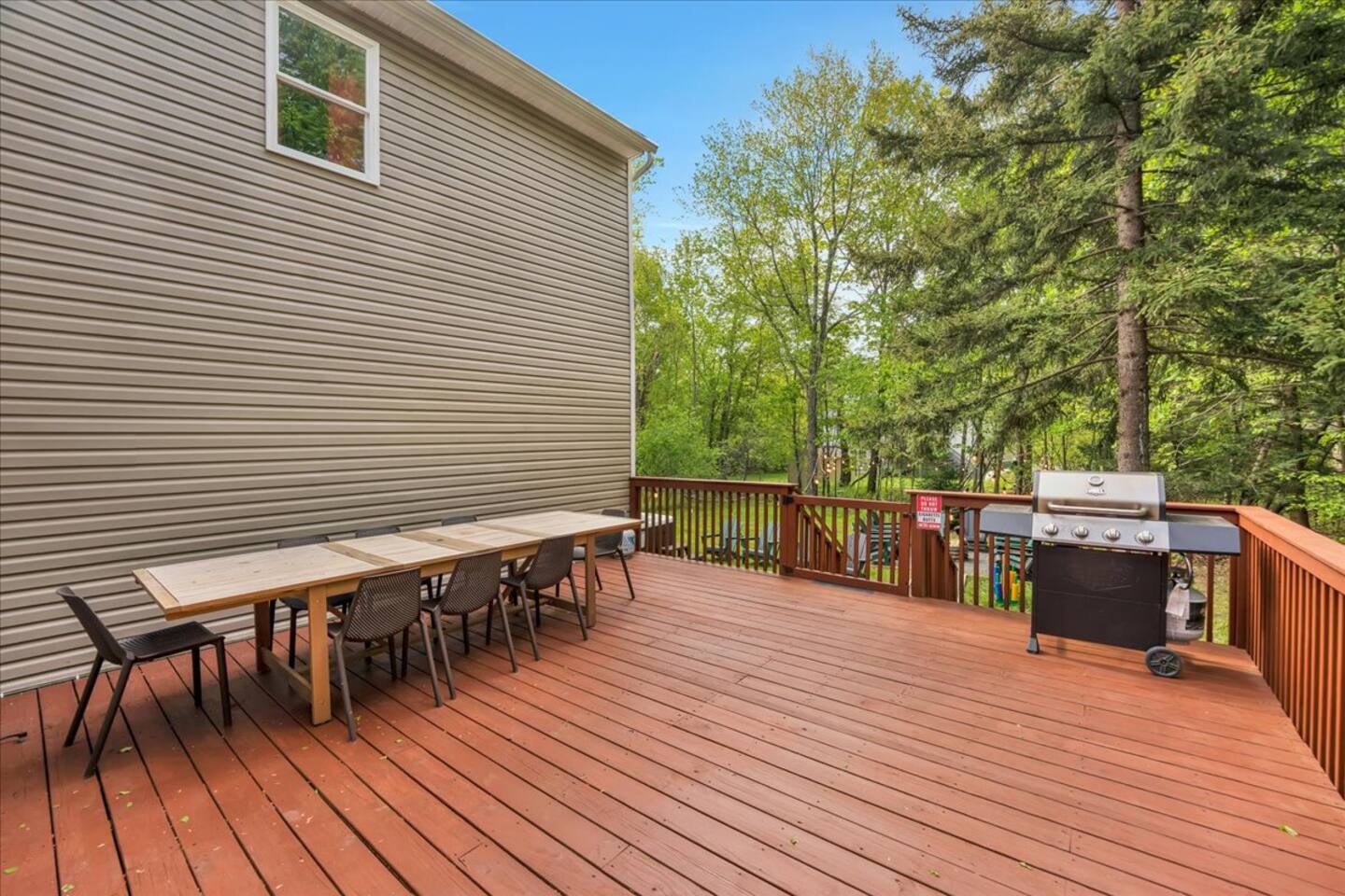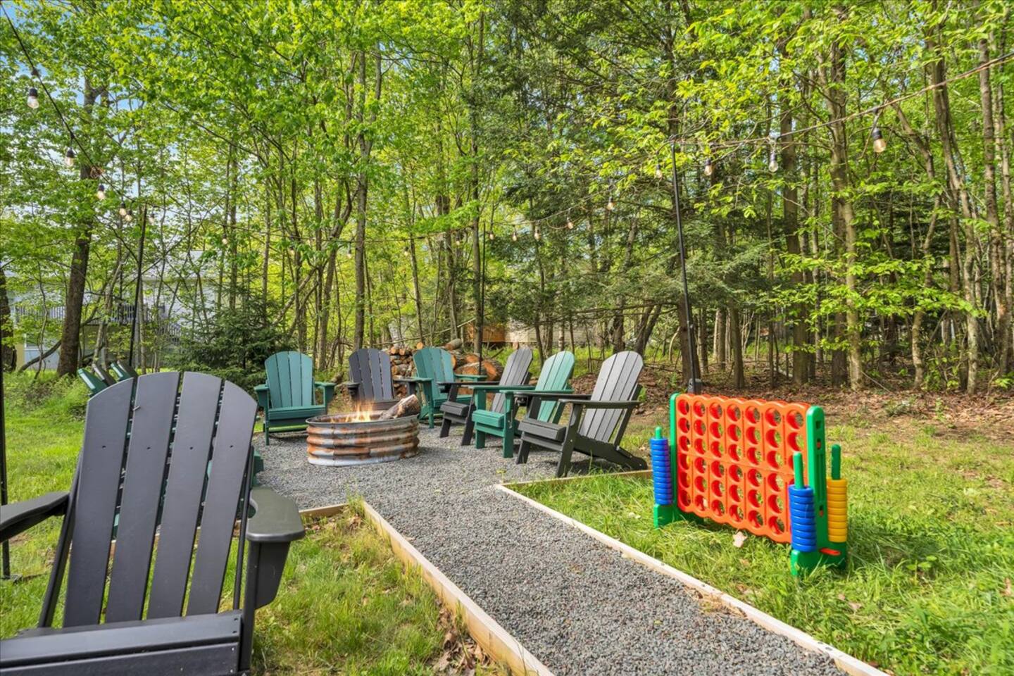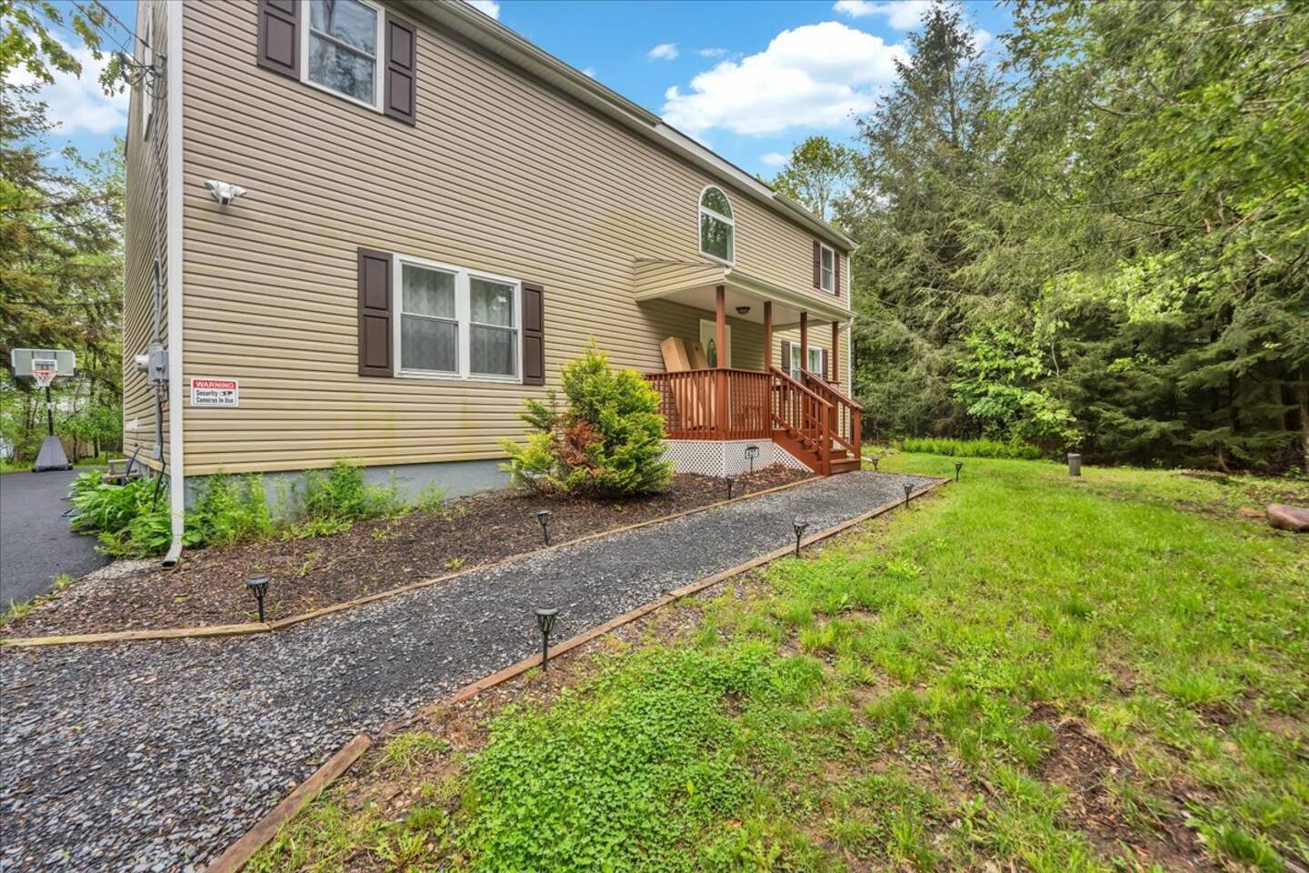 KEY FEATURES: ☀ Sleeps 14; 5 bedrooms, 1 King, 4 queen, 2 twin ☀ 2 Bathrooms; 1 full with combo shower/tub, 1 with shower only ☀ Well-equipped kitchen with seating for 12 guests ☀ Smart Tv systems throughout the home ☀ Board games and puzzles ☀ Dog-friendly ☀ Gorgeous forest views ☀ Back deck with grill ☀ Private outdoor hot tub ☀ Fire pit with some wood provided ☀ Short distance to Pocono Mt. attractions ☀6 miles from Jack Frost, Big Boulder Ski ☀13 miles from Kalahari ☀17 miles from Camelback Ski Resort ☀7 miles from Pocono Raceway *Please note- there is a private hot tub at the house. Due to consistent, sub-freezing temperatures in the area, the tub may not be able to be used. We apologize for any inconvenience but refunds will not be offered if hot tub is not functioning correctly.* ☆☆ BEDROOMS ☆☆ This clean and spacious hideaway accommodates up to 14 guests in 5 bedrooms The primary bedroom is fitted with a King-size bed. There are two bedrooms that have 2 twin sized beds in each and two more bedrooms that have queen sized beds. All bedrooms are located on the second floor of the home. There are linens, extra blankets, and extra pillows so you don’t have to bring a thing with you to have a super comfortable night’s sleep! Please note: while the house sleeps 14, be mindful of bed sizes and be sure that the set up is appropriate for your group. TVs in the primary bedroom as well as the kids' room. ☆☆ BATHROOMS ☆☆ There are two full bathrooms and one half bath, each of them stocked with the essentials you need for the duration of your stay. The half bath is on the first floor and is located right off the living room. The second bathroom is on the second floor and has a stall shower only. The third bathroom has a shower/tub combo. We provide a hair dryer, shampoo, conditioner, & body wash in each bathroom. There are also plenty of towels so you don't have to pack any! ☆☆ KITCHEN ☆☆ The kitchen is fully equipped with all the appliances, utensils and cookware you need to feel at home. The dining area seats 12 guests at the retro, mid-century modern table and there is additional seating available for larger groups. We even have a high chair for our smallest guests to use! Enjoy your morning coffee or tea with our fully-stocked coffee bar. ☆☆ OUTSIDE SPACE ☆☆ The exterior area of this home boasts a cozy fire pit with plenty of space for you to relax around. The back yard is large enough to bring everyone out to enjoy the beautiful Pocono outdoors! The backyard is now fully fenced in! There is a large back deck with a table for you to have plenty of space to make yourself at home. The best part? There's a hot tub right off the deck for you to enjoy during your stay! Use our grill and make great memories hanging out at the house. ☆☆ THE COMMUNITY☆☆ Pool Access: There is a heated community pool available. You need a guest pass and must register with the pool attendant. 11am–7pm Beginning weekends at Memorial Day and daily after June 21. The cost is $5 per person per day for ages 14 and up. Children under 14 must be with an adult. Cash payments only. Use of community amenities is not guaranteed. Amenity availability is determined solely by the community/HOA and may change without notice. No refunds or discounts will be provided if amenities are unavailable during your stay. This home is located in a community with full-time residents. We aim to be respectful neighbors and kindly ask that you do the same. Quiet hours will be strictly observed and enforced. After booking, we will ask you to complete and sign a guest registration form that includes your vehicle information and the names/ages of all of your guests. Maximum amount of guests is 14 (over the age of 1-no exceptions can be made.