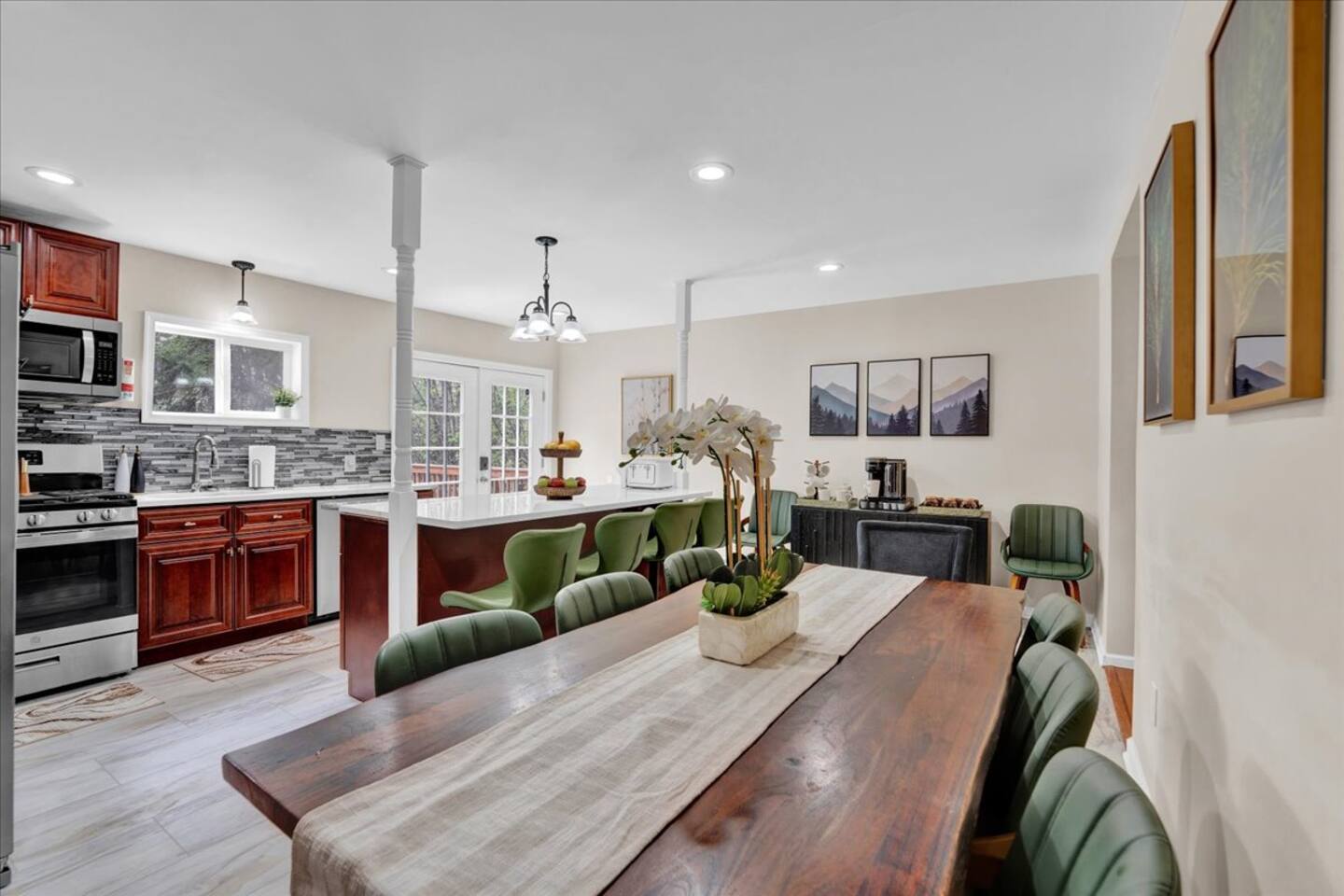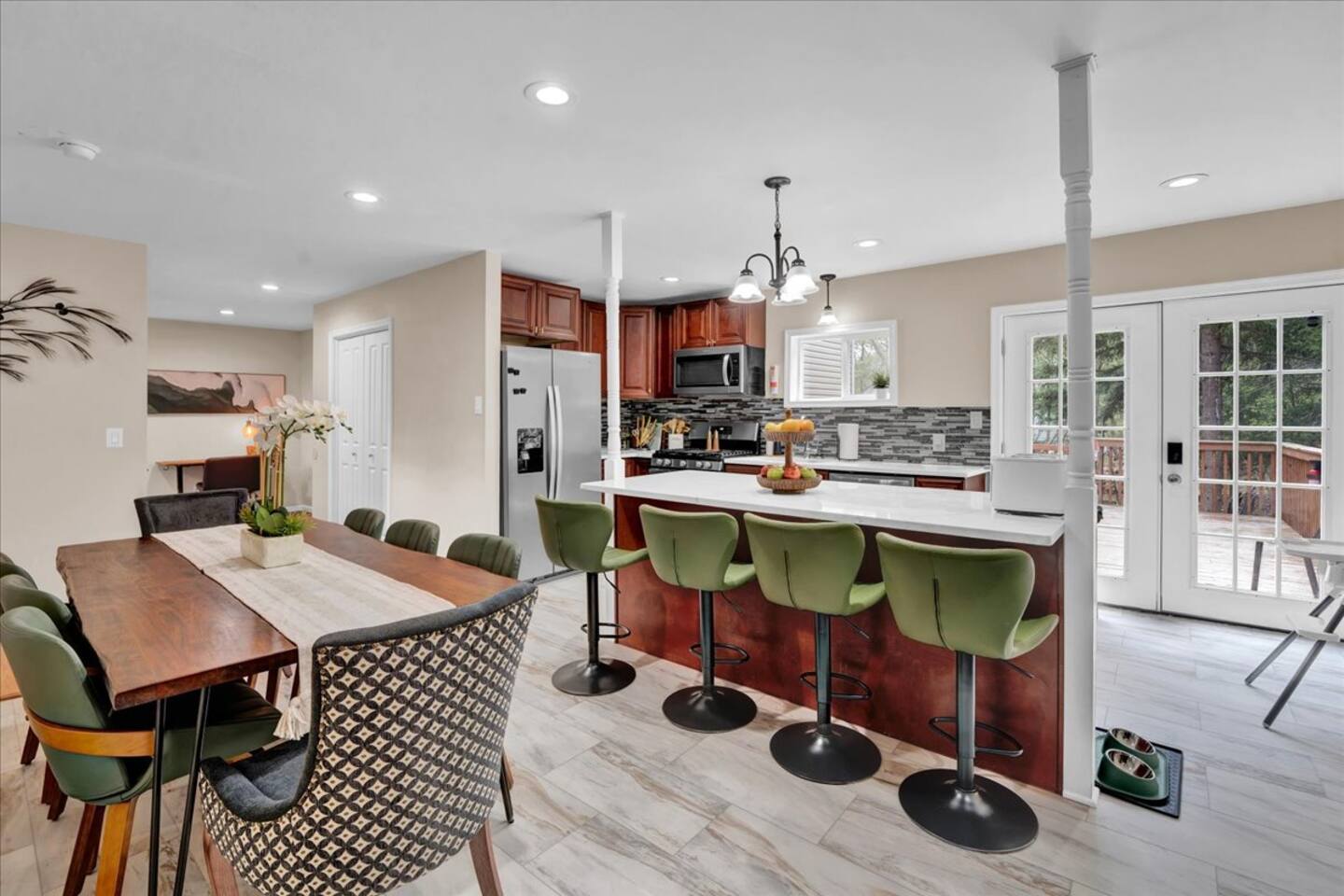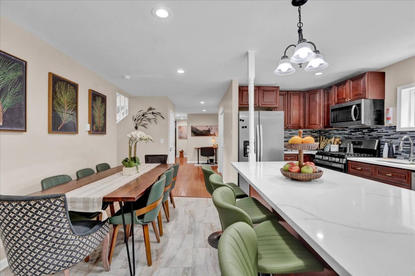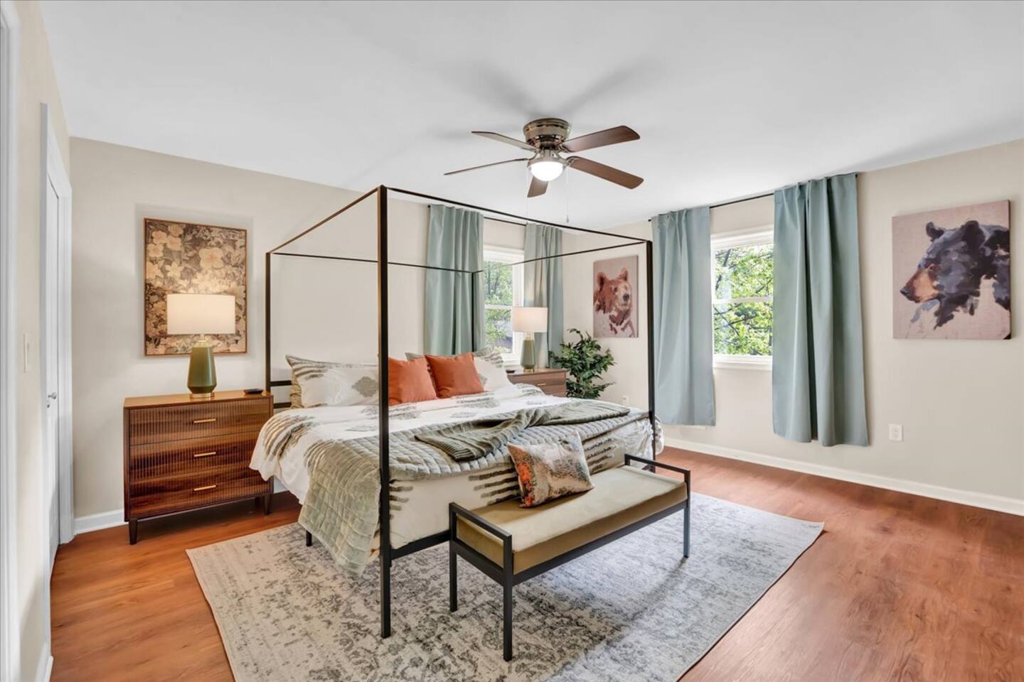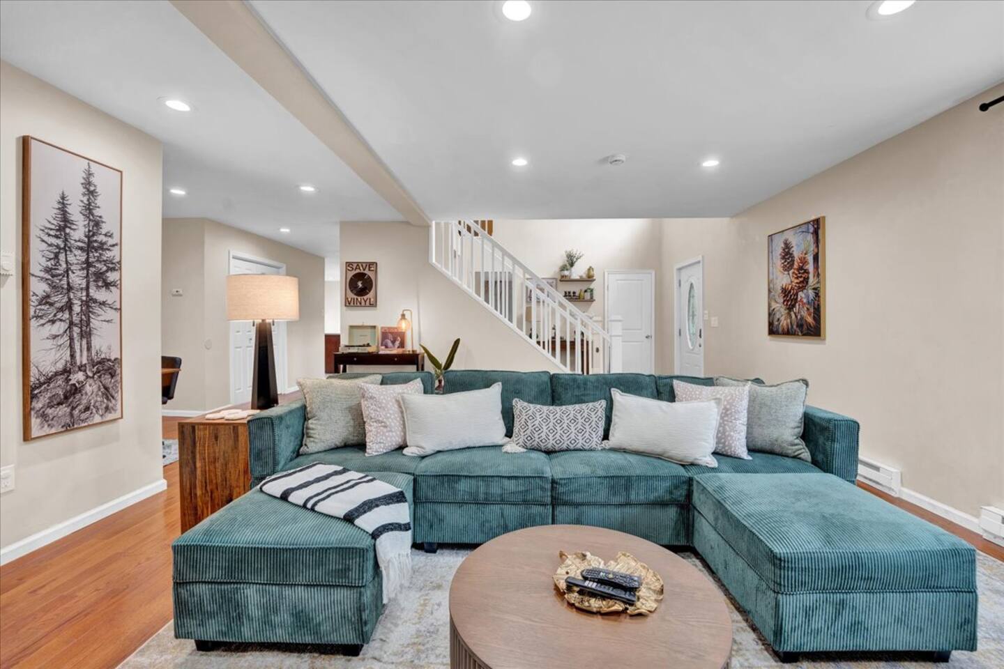 KEY FEATURES: ☀ Sleeps 14; 5 bedrooms, 1 King, 4 queen, 2 twin ☀ 2 Bathrooms; 1 full with combo shower/tub, 1 with shower only ☀ Well-equipped kitchen with seating for 12 guests ☀ Smart Tv systems throughout the home ☀ Board games and puzzles ☀ Dog-friendly ☀ Gorgeous forest views ☀ Back deck with grill ☀ Private outdoor hot tub ☀ Fire pit with some wood provided ☀ Short distance to Pocono Mt. attractions ☀6 miles from Jack Frost, Big Boulder Ski ☀13 miles from Kalahari ☀17 miles from Camelback Ski Resort ☀7 miles from Pocono Raceway *Please note- there is a private hot tub at the house. Due to consistent, sub-freezing temperatures in the area, the tub may not be able to be used. We apologize for any inconvenience but refunds will not be offered if hot tub is not functioning correctly.* ☆☆ BEDROOMS ☆☆ This clean and spacious hideaway accommodates up to 14 guests in 5 bedrooms The primary bedroom is fitted with a King-size bed. There are two bedrooms that have 2 twin sized beds in each and two more bedrooms that have queen sized beds. All bedrooms are located on the second floor of the home. There are linens, extra blankets, and extra pillows so you don’t have to bring a thing with you to have a super comfortable night’s sleep! Please note: while the house sleeps 14, be mindful of bed sizes and be sure that the set up is appropriate for your group. TVs in the primary bedroom as well as the kids' room. ☆☆ BATHROOMS ☆☆ There are two full bathrooms and one half bath, each of them stocked with the essentials you need for the duration of your stay. The half bath is on the first floor and is located right off the living room. The second bathroom is on the second floor and has a stall shower only. The third bathroom has a shower/tub combo. We provide a hair dryer, shampoo, conditioner, & body wash in each bathroom. There are also plenty of towels so you don't have to pack any! ☆☆ KITCHEN ☆☆ The kitchen is fully equipped with all the appliances, utensils and cookware you need to feel at home. The dining area seats 12 guests at the retro, mid-century modern table and there is additional seating available for larger groups. We even have a high chair for our smallest guests to use! Enjoy your morning coffee or tea with our fully-stocked coffee bar. ☆☆ OUTSIDE SPACE ☆☆ The exterior area of this home boasts a cozy fire pit with plenty of space for you to relax around. The back yard is large enough to bring everyone out to enjoy the beautiful Pocono outdoors! The backyard is now fully fenced in! There is a large back deck with a table for you to have plenty of space to make yourself at home. The best part? There's a hot tub right off the deck for you to enjoy during your stay! Use our grill and make great memories hanging out at the house. ☆☆ THE COMMUNITY☆☆ Pool Access: There is a heated community pool available. You need a guest pass and must register with the pool attendant. 11am–7pm Beginning weekends at Memorial Day and daily after June 21. The cost is $5 per person per day for ages 14 and up. Children under 14 must be with an adult. Cash payments only. Use of community amenities is not guaranteed. Amenity availability is determined solely by the community/HOA and may change without notice. No refunds or discounts will be provided if amenities are unavailable during your stay. This home is located in a community with full-time residents. We aim to be respectful neighbors and kindly ask that you do the same. Quiet hours will be strictly observed and enforced. After booking, we will ask you to complete and sign a guest registration form that includes your vehicle information and the names/ages of all of your guests. Maximum amount of guests is 14 (over the age of 1-no exceptions can be made.