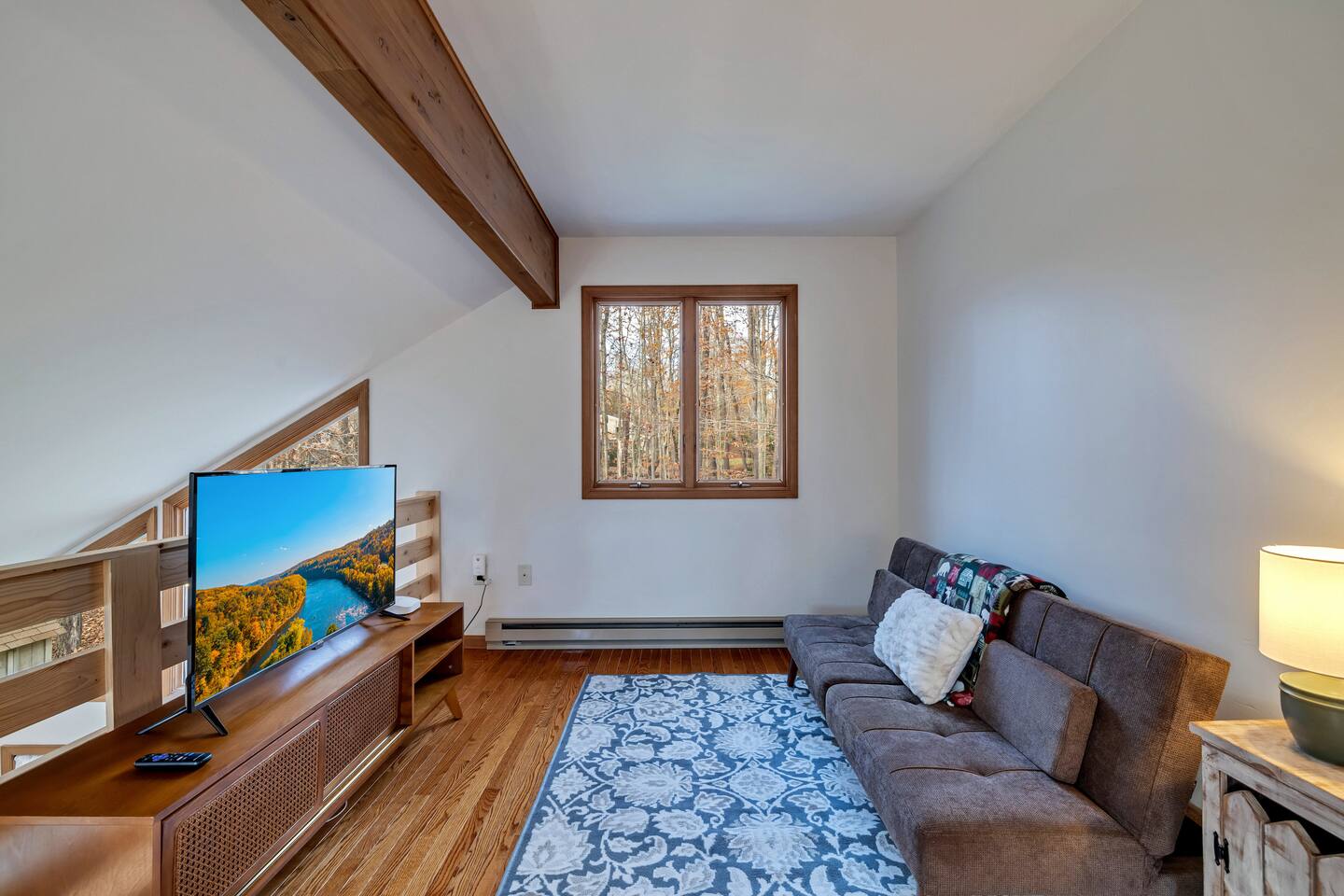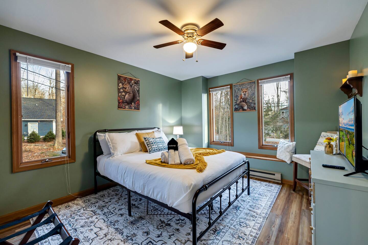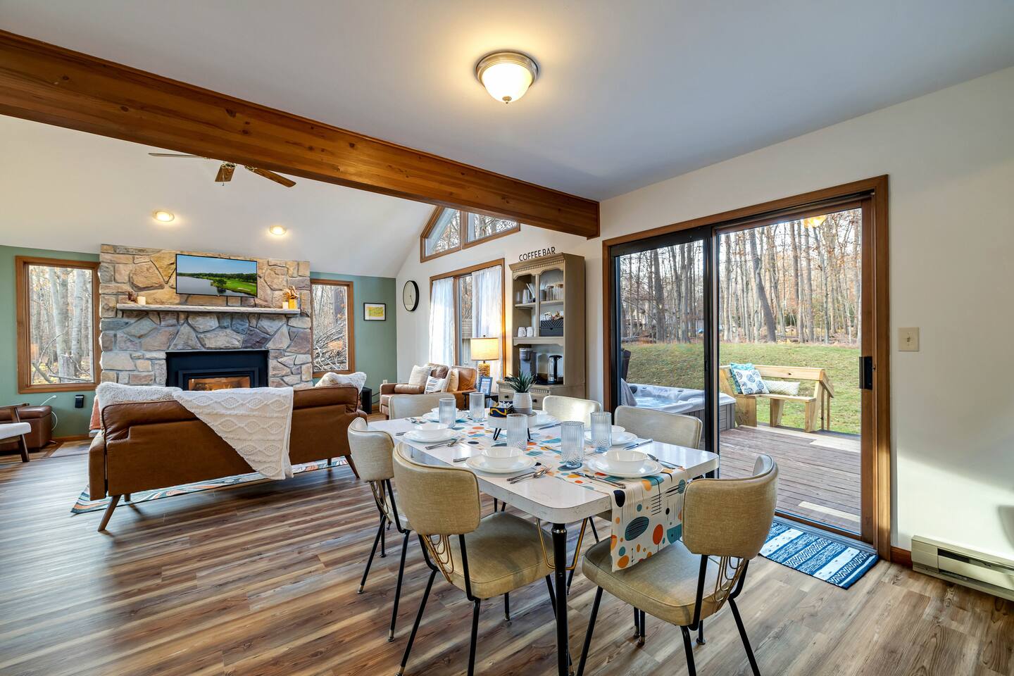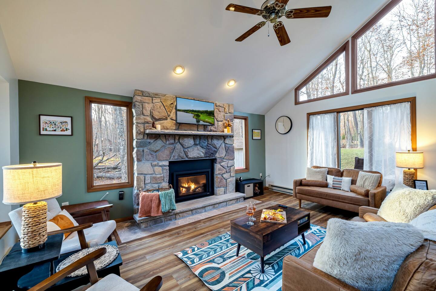 Escape to our charming mid-century modern retreat in the Poconos, ideal for families and pets. Fully stocked for a stress-free vacation, there's no need to pack essentials! Just minutes from attractions like Jack Frost/Big Boulder and Kalahari Resorts, you can enjoy outdoor adventures or relax by the fire pit or visit the community’s beautiful beaches for fishing and swimming. Heritage Hideaway is your perfect home base for relaxation and adventure. Book today!