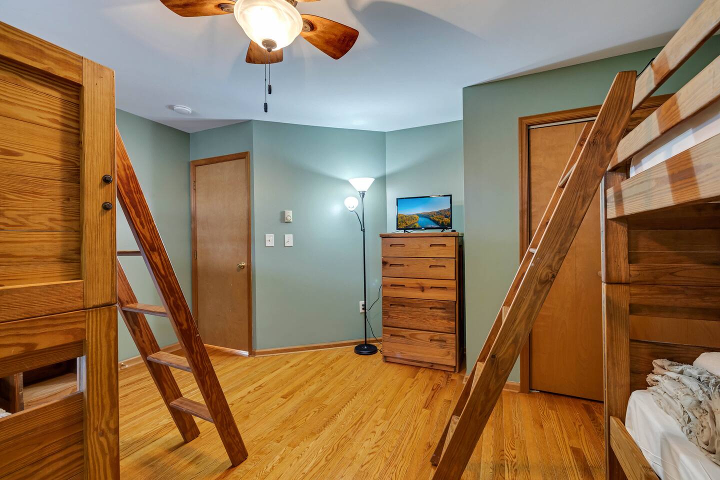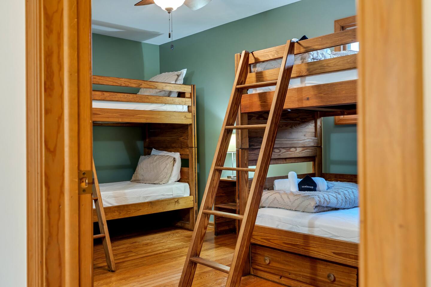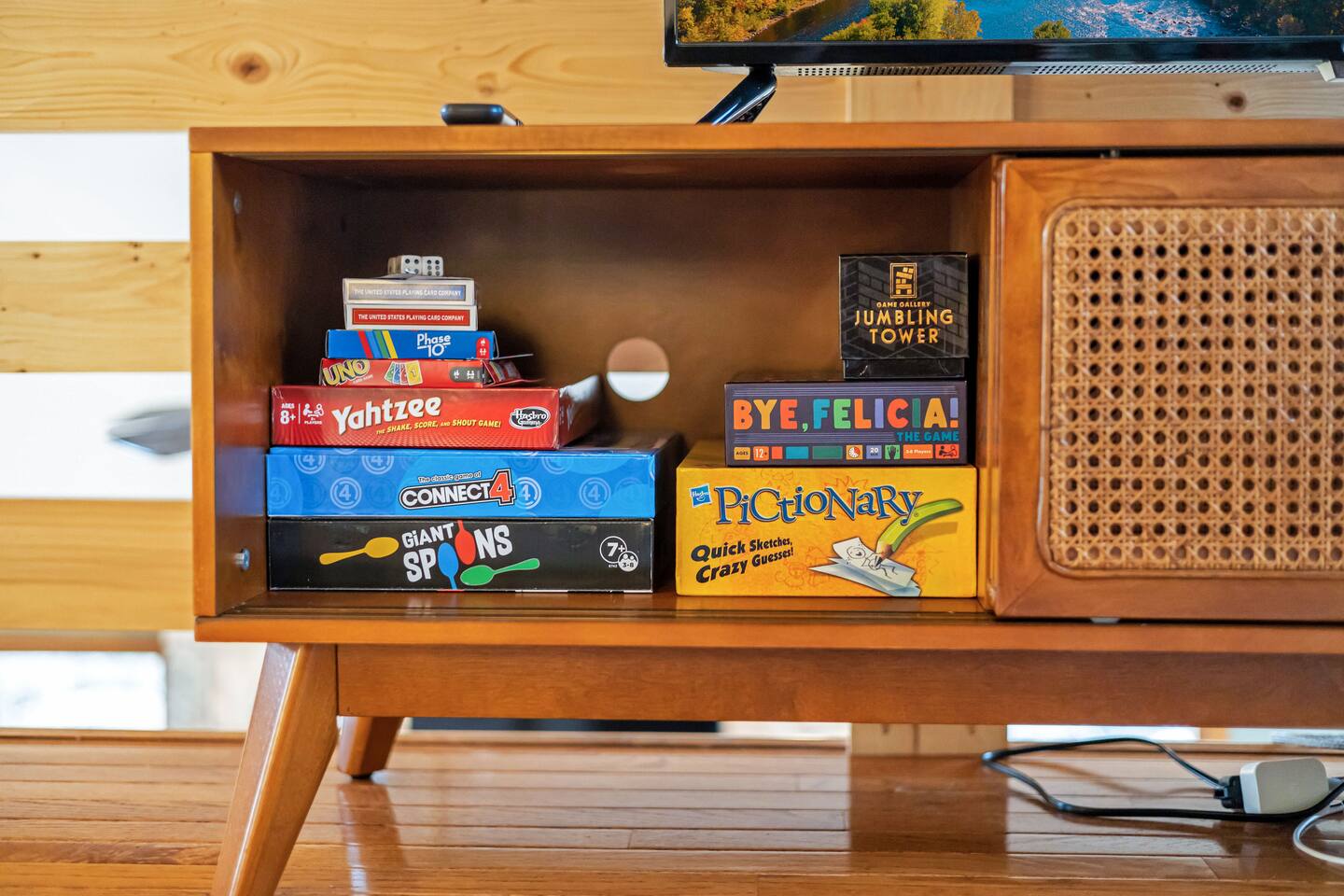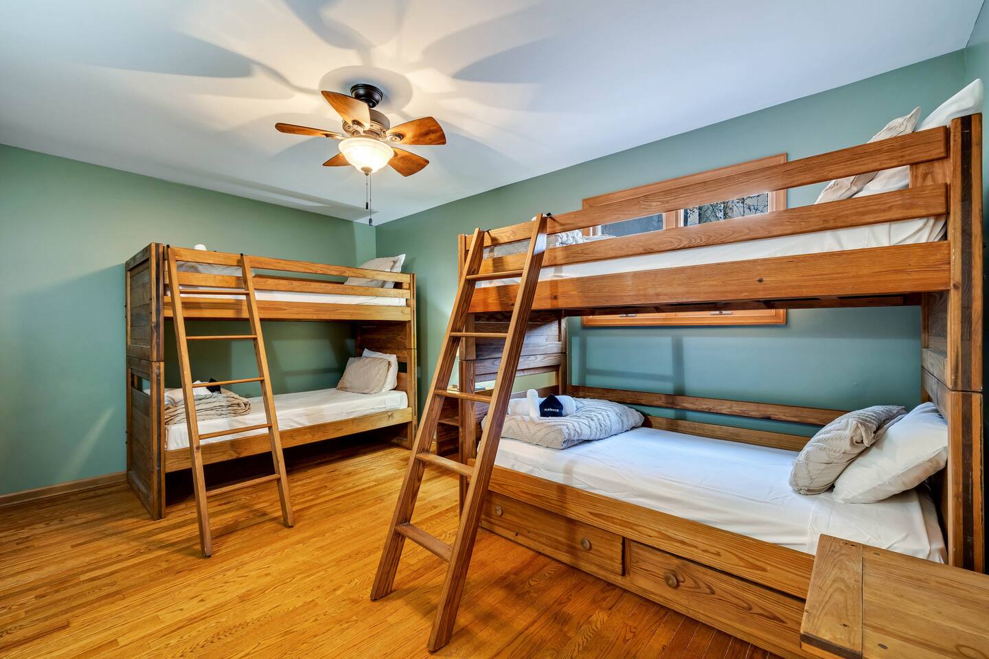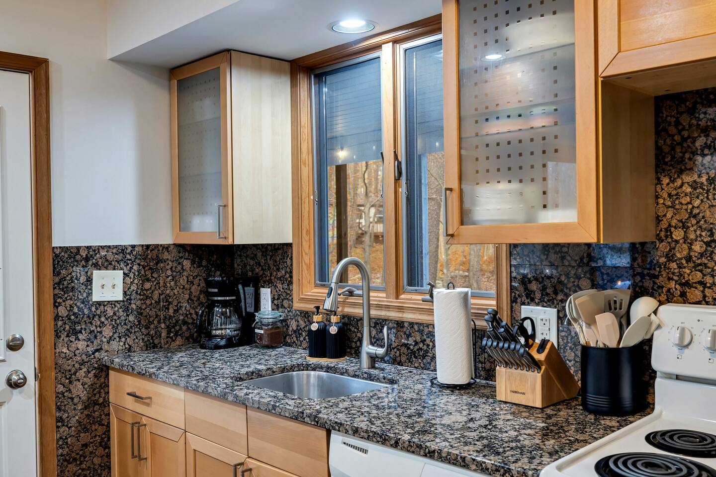 KEY FEATURES: ☀ Sleeps 8; 3 bedrooms, 2 queen, 4 twin bunks ☀ 2 Bathrooms; 1 full with combo shower/tub, 1 with shower only ☀ Well-equipped kitchen with seating for 6 guests ☀ Loft for additional space ☀ Roku entertainment systems throughout the home ☀ Board games and puzzles ☀ Dog-friendly ☀ Gorgeous forest views ☀ Back deck with grill ☀ Fire pit with some wood provided ☀ Private Hot Tub ☀ Short distance to Pocono Mt. attractions ☀6 miles from Jack Frost, Big Boulder Ski ☀13 miles from Kalahari ☀17 miles from Camelback Ski Resort ☀7 miles from Pocono Raceway ☆☆ BEDROOMS ☆☆ This clean and spacious hideaway accommodates 8 guests in 3 bedrooms The master bedroom is on the main level of the home and is fitted with a queen-size bed. The secondary bedroom features a queen-size bed as well. The third bedroom has two sets of bunk beds- all twin size. There are linens, extra blankets, and extra pillows so you don’t have to bring a thing with you to have a super comfortable night’s sleep! Please note: while the house sleeps 8, be mindful of bed sizes and be sure that the set up is appropriate for your group. TVs in all three rooms. ☆☆ BATHROOMS ☆☆ There are two full bathrooms, each of them stocked with the essentials you need for the duration of your stay. The first floor bathroom has a stall shower only and the second bathroom has a shower/tub combo. We provide a hair dryer, shampoo, conditioner, & body wash in each bathroom. There are also plenty of towels so you don't have to pack any! ☆☆ KITCHEN ☆☆ The kitchen is fully equipped with all the appliances, utensils and cookware you need to feel at home. The dining area seats 6 guests at the retro, mid-century modern table and there is additional seating available for groups over 6. We even have a high chair for our smallest guests to use! Enjoy your morning coffee or tea with our fully-stocked coffee bar. There's even a crockpot so you can make your favorite meals! ☆☆ OUTSIDE SPACE ☆☆ The exterior area of this home boasts a cozy fire pit with plenty of space for you to relax around. The back yard is large enough to bring everyone out to enjoy the beautiful Pocono outdoors! There is a screened-in porch so you can enjoy the outdoors in any weather. With a table and two outdoor couches, you have plenty of space to make yourself at home. The best part? There's a hot tub right off the deck for you to enjoy during your stay! Use our grill and make great memories hanging out at the house. If you want to venture out, you will have full access to the two lakes in the community as well as tennis and volleyball courts! You can go swimming or bring your fishing gear and see what you can catch. Use of community amenities is not guaranteed. Amenity availability is determined solely by the community/HOA and may change without notice. No refunds or discounts will be provided if amenities are unavailable during your stay. This home is located in a community with full-time residents. We aim to be respectful neighbors and kindly ask that you do the same. Quiet hours will be strictly observed and enforced.