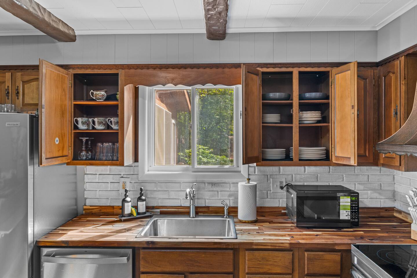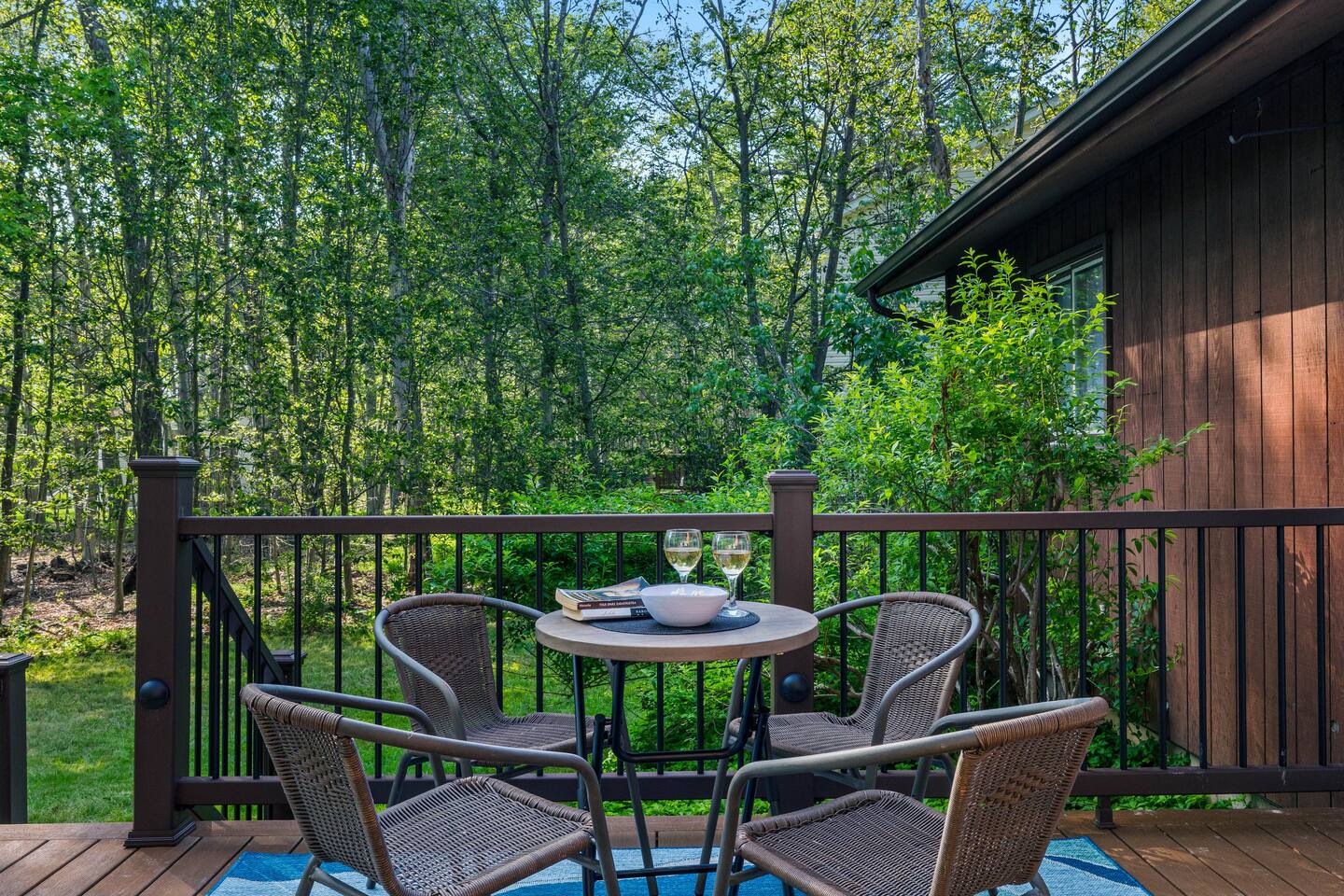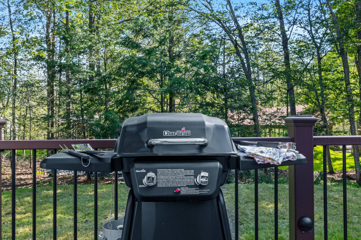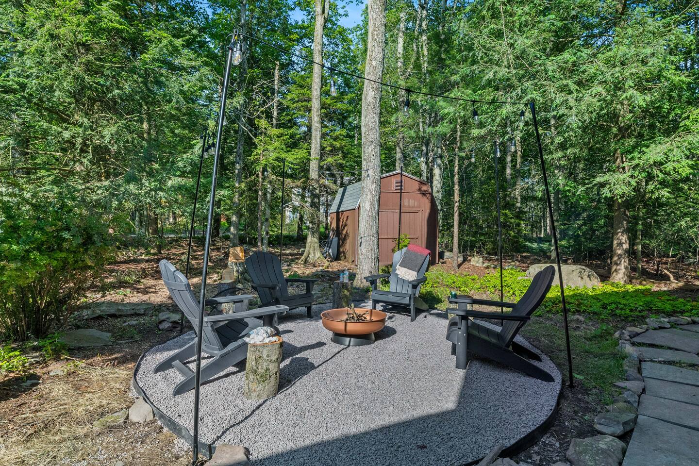 KEY FEATURES: ☀ Sleeps 8; 3 bedrooms, (2 queen, 3 twin beds, 1 twin trundle) ☀ 3 Bathrooms; 1 full with combo shower/tub, 1 with shower only,1 powder room ☀ Well-equipped kitchen with seating for 6 guests ☀ Smart TV ☀ Board games and puzzles ☀ Several video game consoles including arcade-style PacMan ☀ Dog-friendly ☀ Gorgeous forest views ☀ Back deck with grill ☀ Fire pit with some wood provided ☀ Private Hot Tub ☀ Short distance to Pocono Mt. attractions ☆☆ BEDROOMS ☆☆ This clean and spacious hideaway accommodates up to 8 guests in 3 bedrooms .The primary bedroom is on the second level of the home and is fitted with a King-size bed. The secondary bedroom features a queen-size bed as well. The third bedroom has a set of smaller bunk beds, and a twin sized bed with a trundle underneath. There are linens, extra blankets, and extra pillows so you don’t have to bring a thing with you to have a super comfortable night’s sleep! Please note: while the house sleeps 6, be mindful of bed sizes and be sure that the set up is appropriate for your group. ☆☆ BATHROOMS ☆☆ There are two full bathrooms and one powder room, each of them stocked with the essentials you need for the duration of your stay. The primary en-suite bathroom has a stall shower only and the second bathroom has a shower/tub combo. We provide a hair dryer, shampoo, conditioner, & body wash in each bathroom. There are also plenty of towels so you don't have to pack any! ☆☆ KITCHEN ☆☆ The kitchen is fully equipped with all the appliances, utensils and cookware you need to feel at home. The dining area seats 6 guests. We even have a high chair for our smallest guests to use! Enjoy your morning coffee or tea with our fully-stocked coffee bar. There's even a crockpot so you can make your favorite meals! ☆☆ OUTSIDE SPACE ☆☆ The exterior area of this home boasts a cozy fire pit with plenty of space for you to relax around. The back patio is large enough to bring everyone out to enjoy the beautiful Pocono outdoors! There is a screened-in porch so you can enjoy the outdoors in any weather. With two outdoor seating areas you have plenty of space to make yourself at home. The best part? There's a hot tub right on the deck for you to enjoy during your stay! Use our grill and make great memories hanging out at the house. This house, while in a great place to vacation, is also home to some full-time residents. We strive to be the best possible neighbors and ask that you please be respectful. Quiet hours will be strictly observed and enforced. ☆☆ THE COMMUNITY☆☆ This home is located in the beautiful and amenity-filled Pocono Farms Country Club. Amenity passes for 6 guests are included with your stay! Any guests over 6 will need to purchase passes on-site. COMMUNITY ACCESS/AMENITIES *Just a short 5 minute drive from the house!* Access to Glacier Lake & beach for kayaking, paddle boarding, and fishing Beach Volleyball Court Basketball Tennis and Pickle ball courts Bocce Ball/ Shuffleboard Olympic Size Outdoor Pool (seasonal) Seasonal entertainment events for every member of the family Access to a PGA Golf Course and fitness center are available for purchase but are not included in your amenity fee. This home is located in a community with full-time residents. We aim to be respectful neighbors and kindly ask that you do the same. Quiet hours will be strictly observed and enforced.