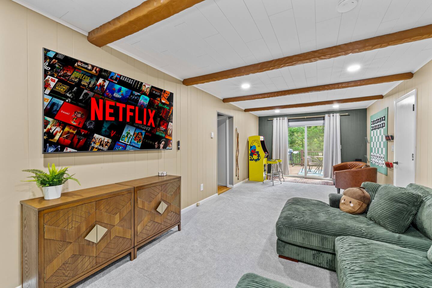 Welcome to Firefly Hollow—a whimsical retreat in the heart of the Poconos. Designed with playful touches and homey comforts, Firefly Hollow feels like a home away from home. This cozy getaway features a new hot tub, games, and space for the whole family, as well as access to amazing community amenities. Just minutes from the region’s top attractions, you can explore nearby or stay in and soak up the peaceful surroundings. At Firefly Hollow, every stay is a story waiting to be told.