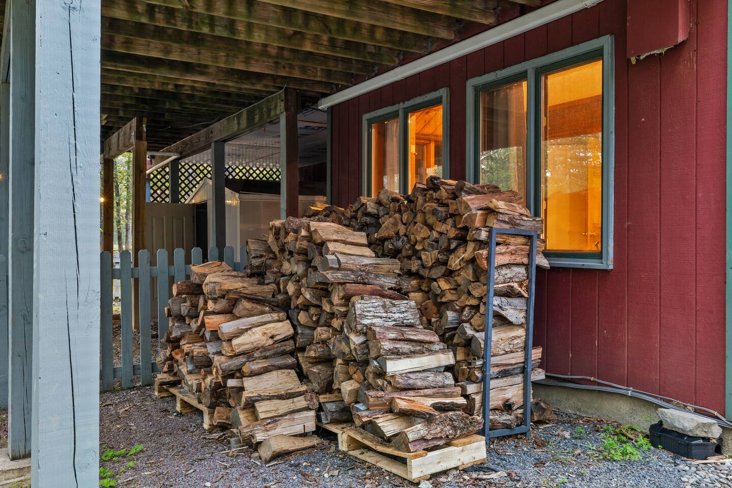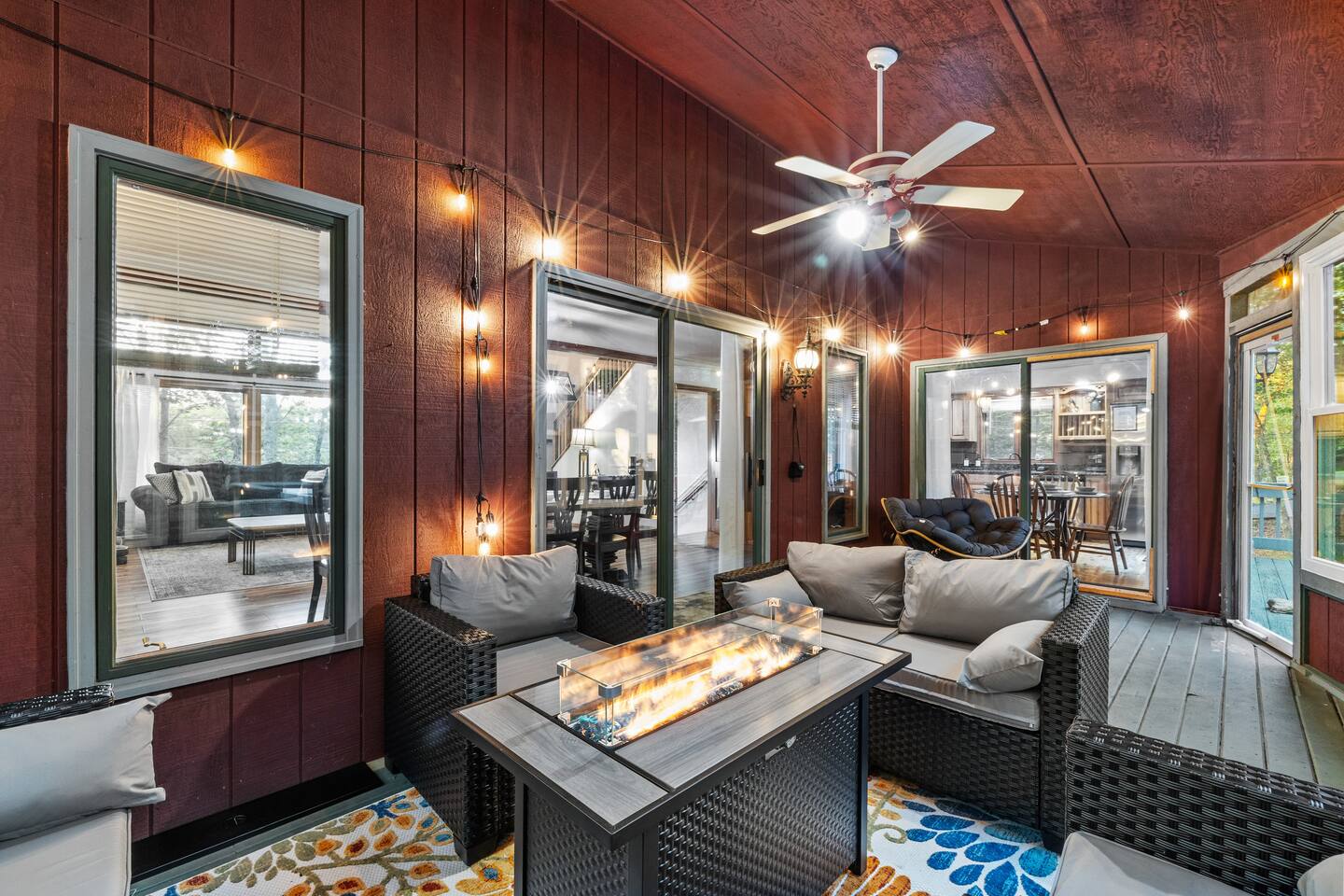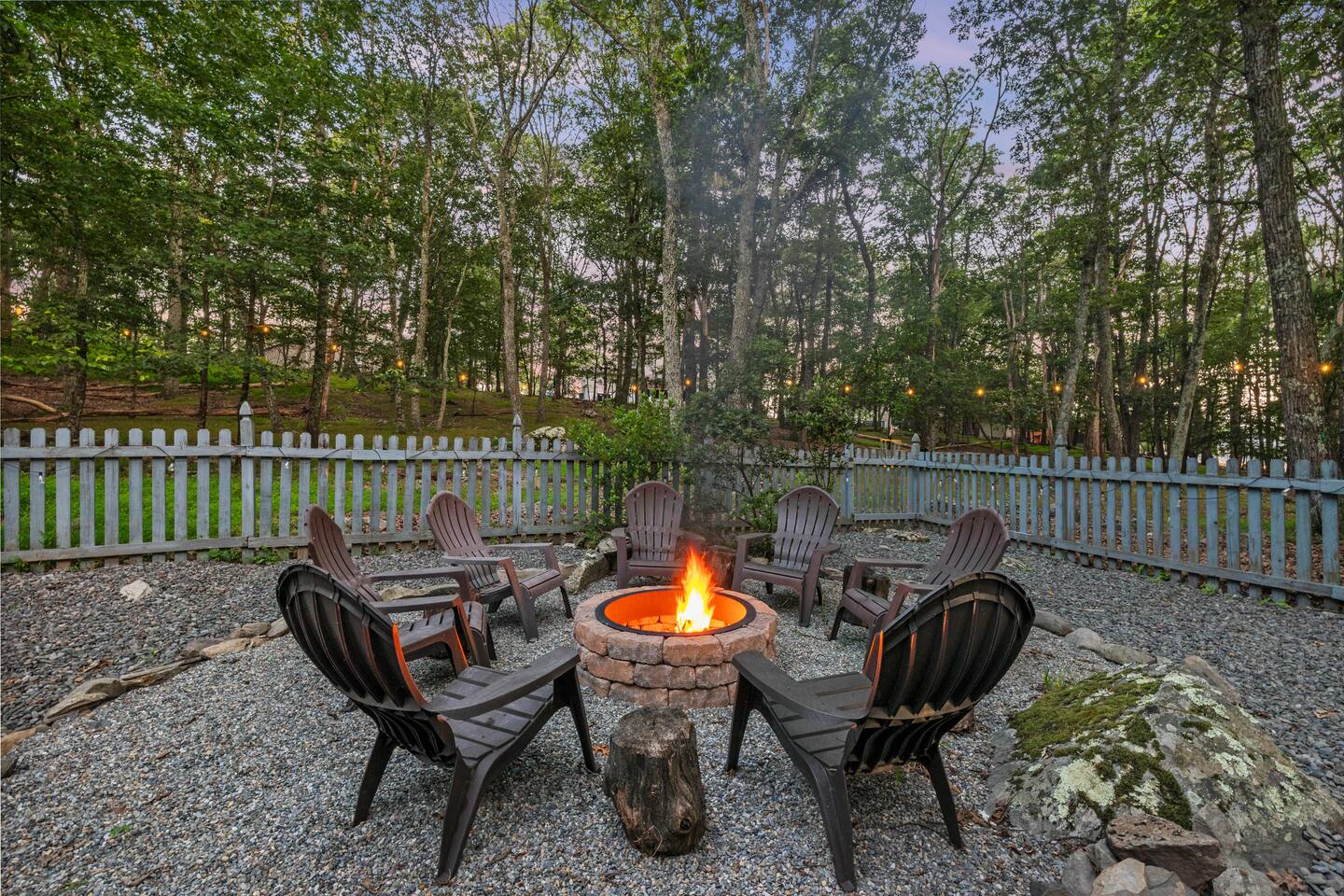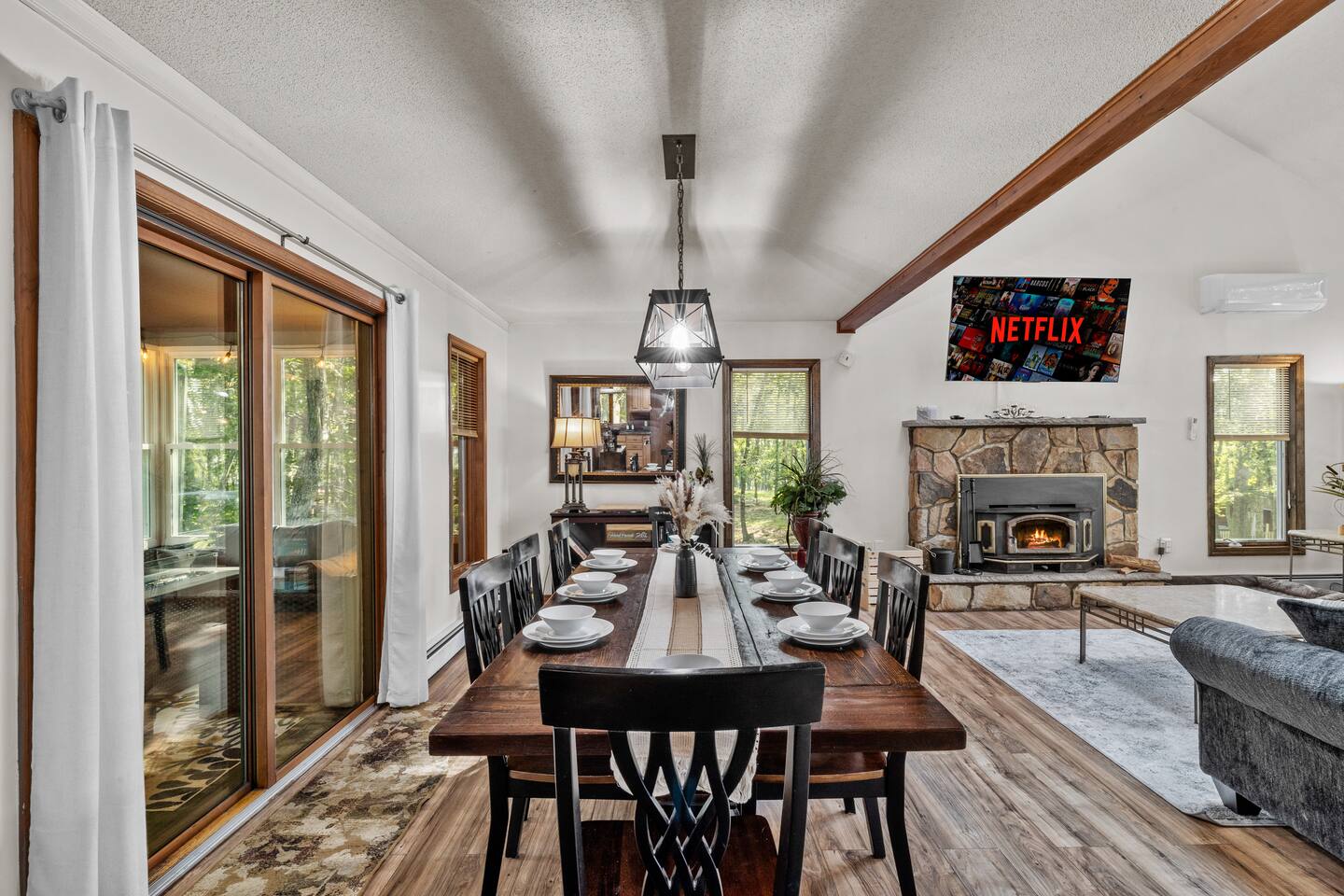 KEY FEATURES: ☀ Sleeps 12; 5 bedrooms, 1 King, 3 queen, 1 set of bunks (full and twin sized), full sized futon ☀ 3 Full Bathrooms-2 bath tubs/1 stall shower ☀ Well-equipped kitchen with seating for 12 guests ☀ Smart TVs throughout the home ☀ Board games and puzzles ☀ Dog-friendly ☀ Gorgeous forest views with giant backyard ☀ Back deck with grill and private hot tub ☀ Fire pit with wood provided ☀ Screened in porch with gas fire pit ☀ Short distance to all Pocono attractions ☀ 2 disc golf holes ☀ Game room with multi-function game table ☀Full access to Penn Estates amenities including pool and lake ☆☆ BEDROOMS ☆☆ This extremely spacious getaway accommodates 12 guests in 5 bedrooms The master bedroom is on the main level of the home and is fitted with a King-size bed. The secondary floor has 3 bedrooms- 2 queen size, 1 set of bunks with a twin and full bed, and a full sized futon. The bottom floor has the house's last bedroom with a queen sized bed. There are linens, extra blankets, and extra pillows so you don’t have to bring a thing with you to have a super comfortable night’s sleep! TVs in all rooms. ☆☆ BATHROOMS ☆☆ There are three full bathrooms, each of them stocked with the essentials you need for the duration of your stay. The primary bathroom contains a stall shower and massive bath tub for relaxing. The second floor has a full bathroom with tub/shower combo. The bottom floor has a stall shower only. We provide a hair dryer, shampoo, conditioner, & body wash in each bathroom. There are also plenty of towels so you don't have to pack any! ☆☆ KITCHEN ☆☆ The kitchen is fully equipped with all the appliances, utensils and cookware you need to feel at home. The dining area seats 8 guests at the formal dining table and there is additional seating available in the kitchen for 4 more. We even have a high chair for our smallest guests to use! Enjoy your morning coffee or tea with our fully-stocked coffee bar. ☆☆ OUTSIDE SPACE ☆☆ The exterior area of this home is huge and is perfect for larger groups to come and have enough space to spread out. It boasts a cozy fire pit with plenty of space for you to relax around. There are 2 disc golf holes, a hammock, private hot tub, and tons of outdoor games. There is a screened-in porch so you can enjoy the outdoors in any weather. There's outdoor seating on couches and chairs and a propane fire pit. The best part? There's a hot tub right on the deck for you to enjoy during your stay! Use our grill and make great memories hanging out at the house. You will also have full access to the Penn Estates amenities including lake and pool! Amenity passes are provided as part of your stay. Use of community amenities is not guaranteed. Amenity availability is determined solely by the community/HOA and may change without notice. No refunds or discounts will be provided if amenities are unavailable during your stay. This home is located in a community with full-time residents. We aim to be respectful neighbors and kindly ask that you do the same. Quiet hours will be strictly observed and enforced.