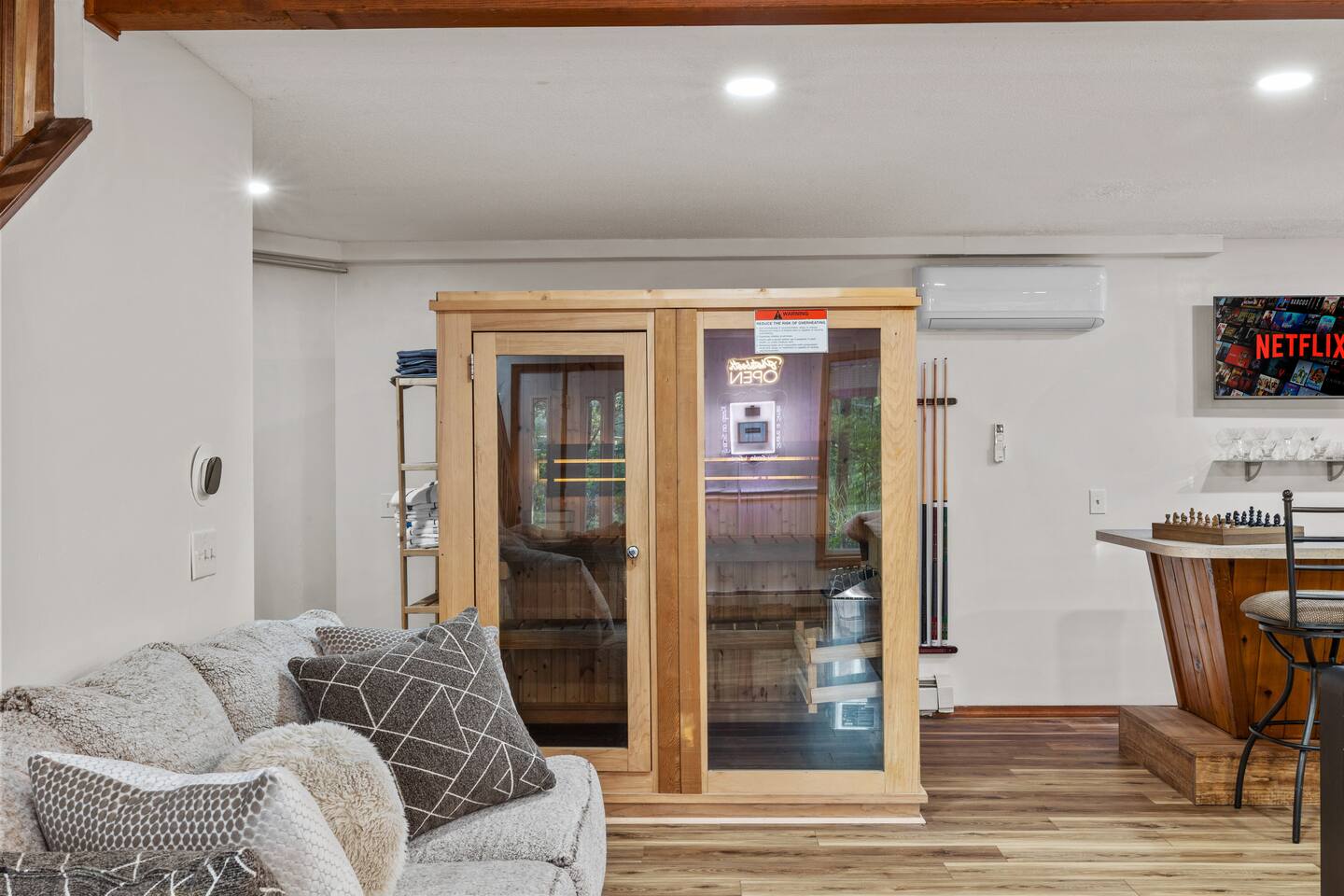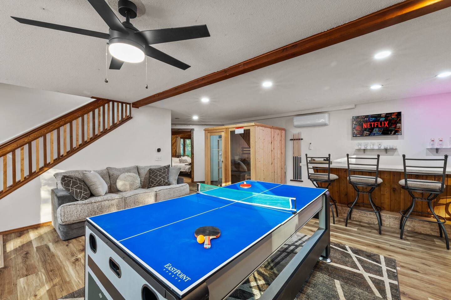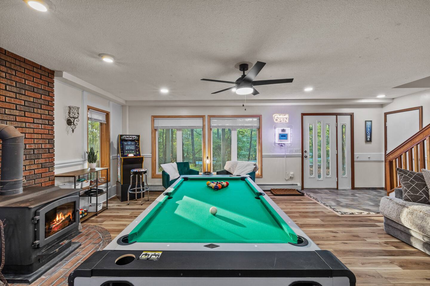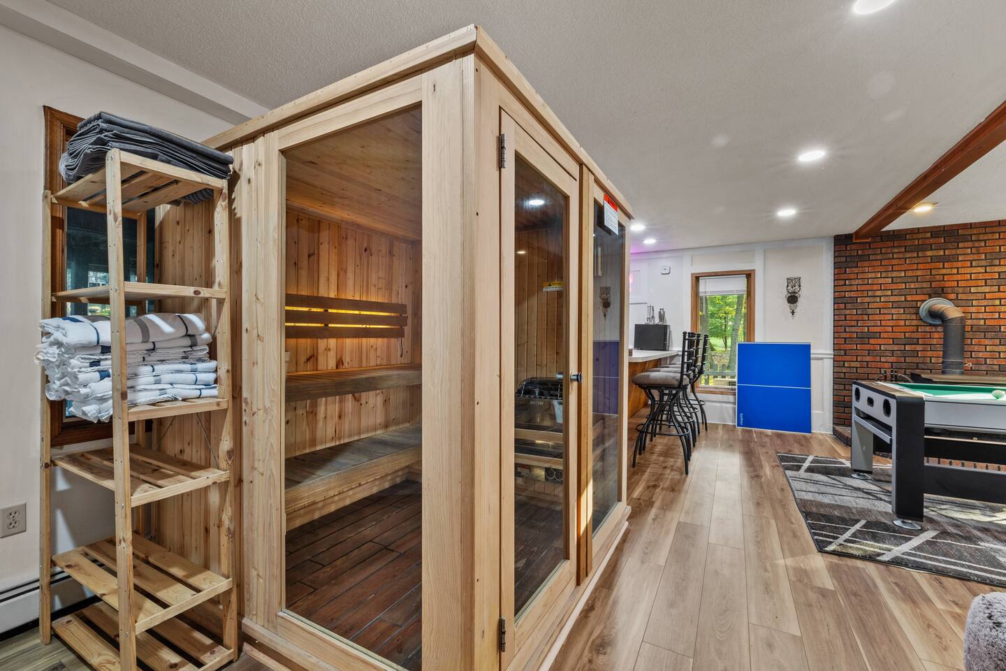 Welcome to the Leisure Lodge! Spacious and full of charm, this cozy retreat offers a relaxing and fun-filled stay. Enjoy the private sauna, game table, arcade games, photo booth, and an expansive backyard perfect for gatherings. The home’s character and comfort make it a great spot to unwind, play, and make lasting memories. Ideal for families or groups looking for space, simplicity, and good vibes in a unique setting.
