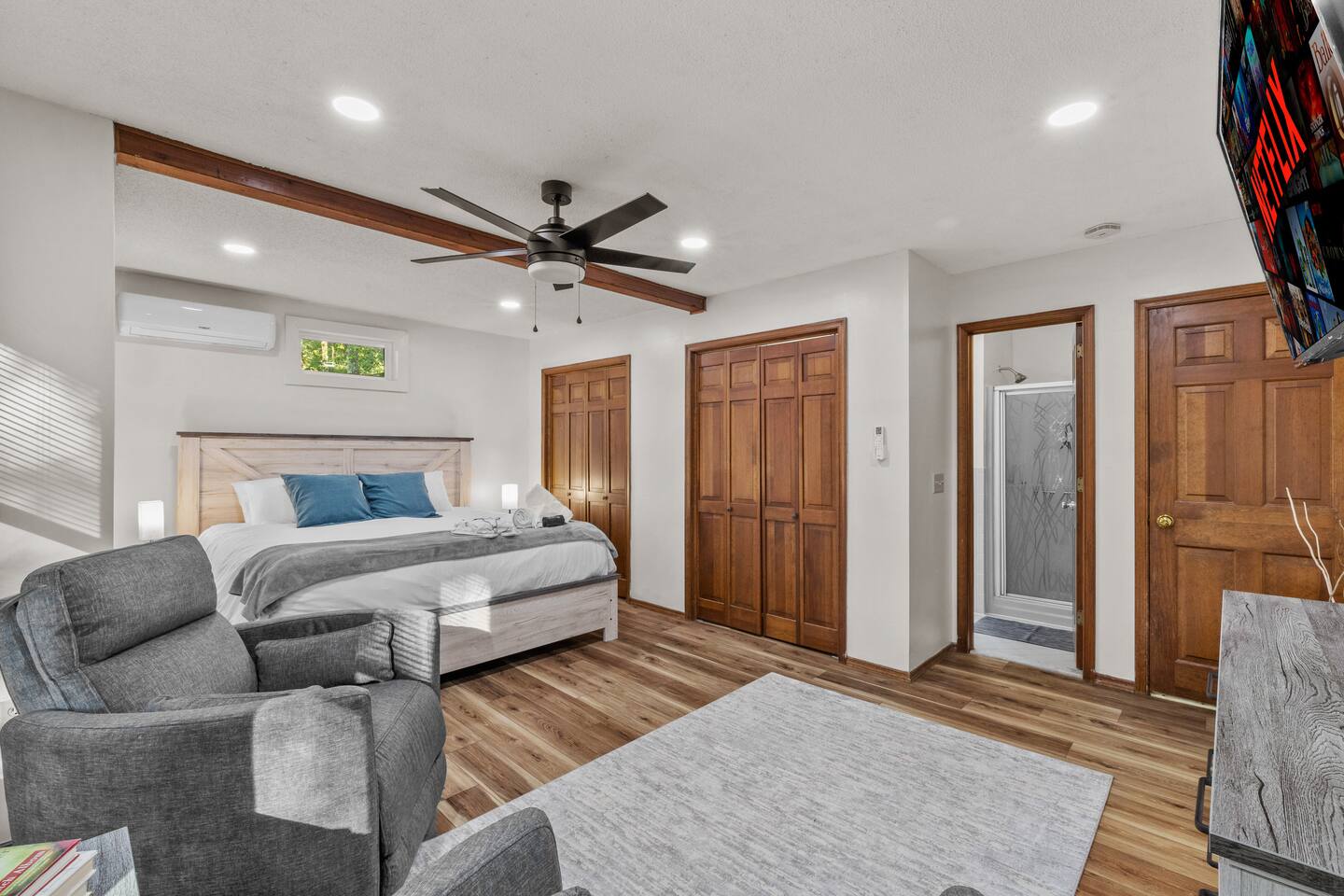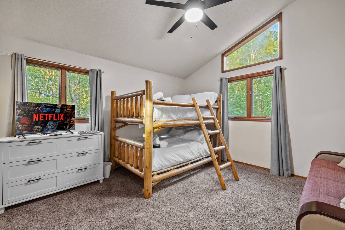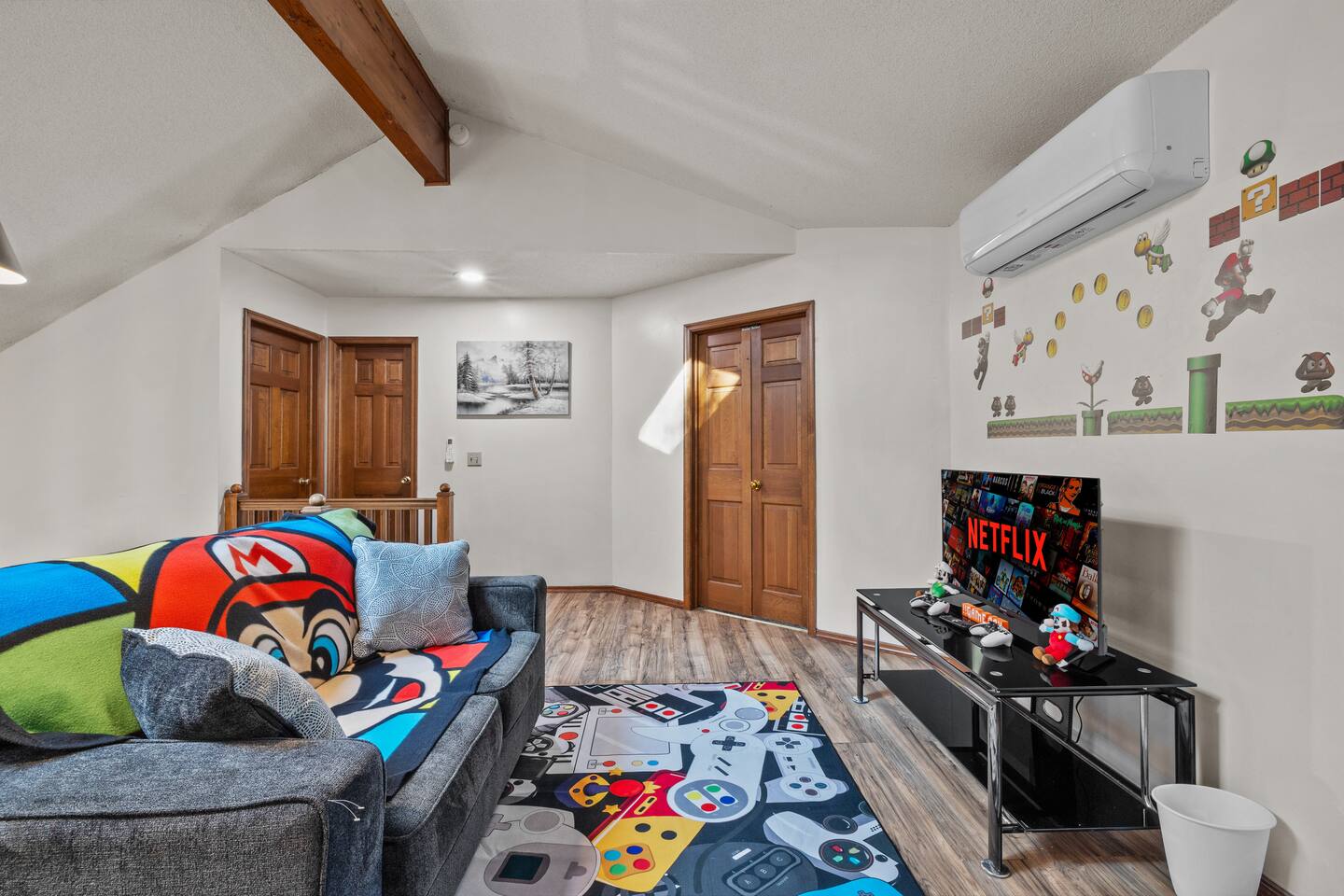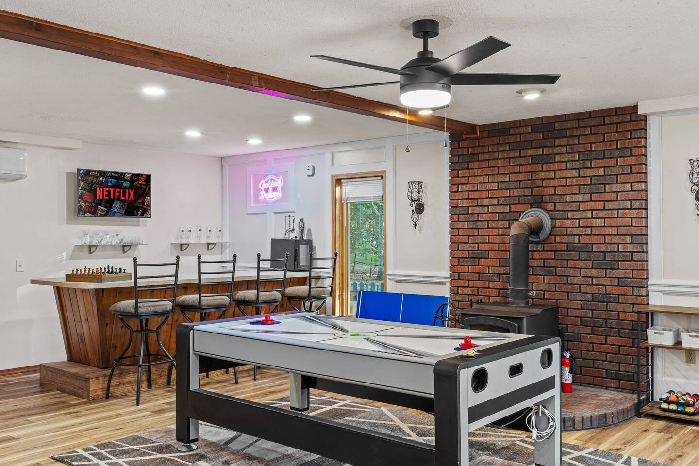 Welcome to the Leisure Lodge! Spacious and full of charm, this cozy retreat offers a relaxing and fun-filled stay. Enjoy the private sauna, game table, arcade games, photo booth, and an expansive backyard perfect for gatherings. The home’s character and comfort make it a great spot to unwind, play, and make lasting memories. Ideal for families or groups looking for space, simplicity, and good vibes in a unique setting.